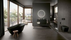 Die neuen WC-Betätigungsplatten Geberit Sigma40 überzeugen mit flachem Slim-Design, exklusiven Materialien, Farbtönen und perfekter Reinigungsfreundlichkeit – ideal für Interior Design Liebhaber