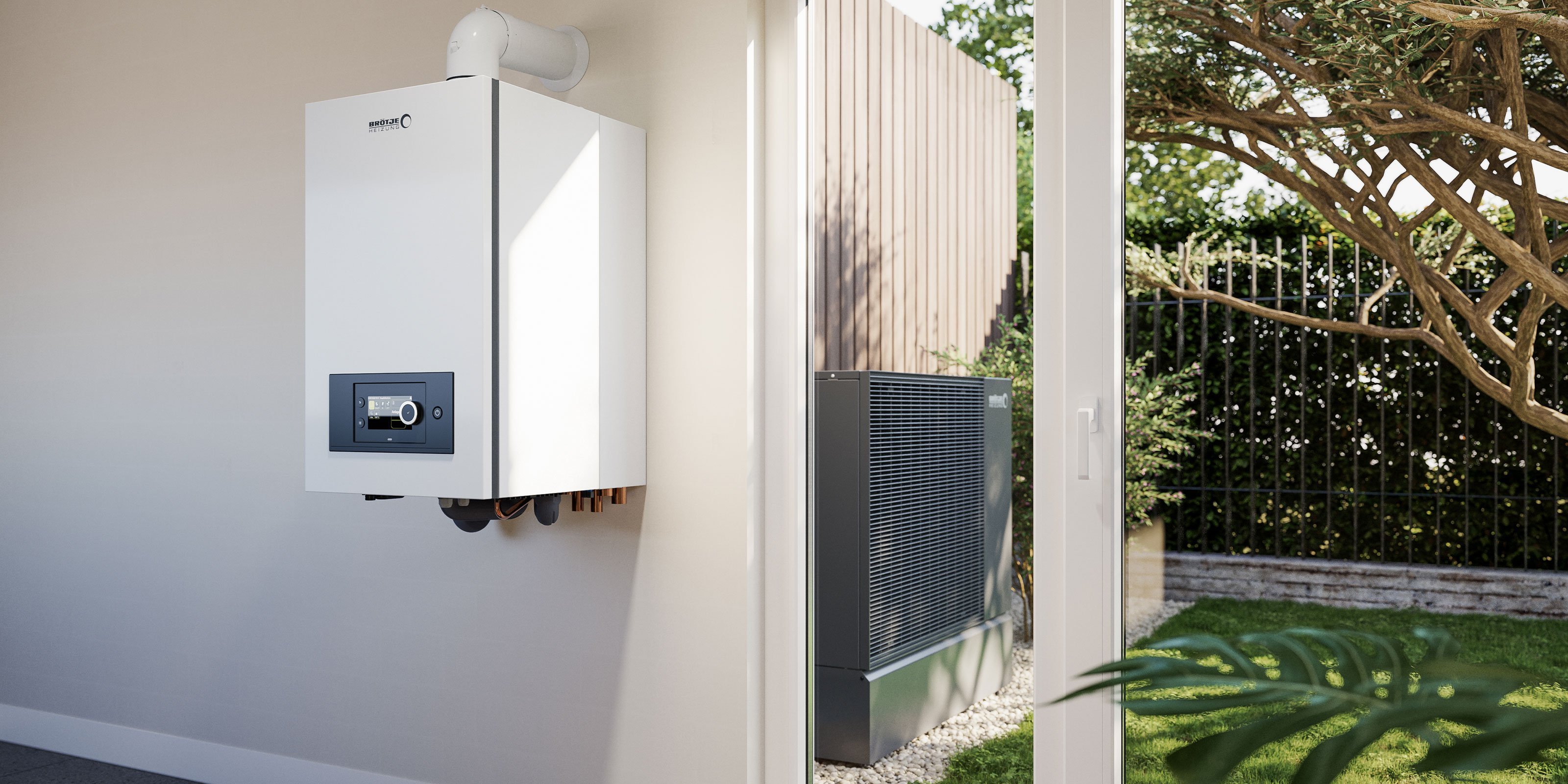 Der Gas-Brennwertwandkessel WGB.2 von BRÖTJE zeichnet sich durch hohen Bedienkomfort und eine flexible Schnittstelle aus. Diese erlaubt beispielsweise die Anbindung einer Wärmepumpe über das Kit 65.