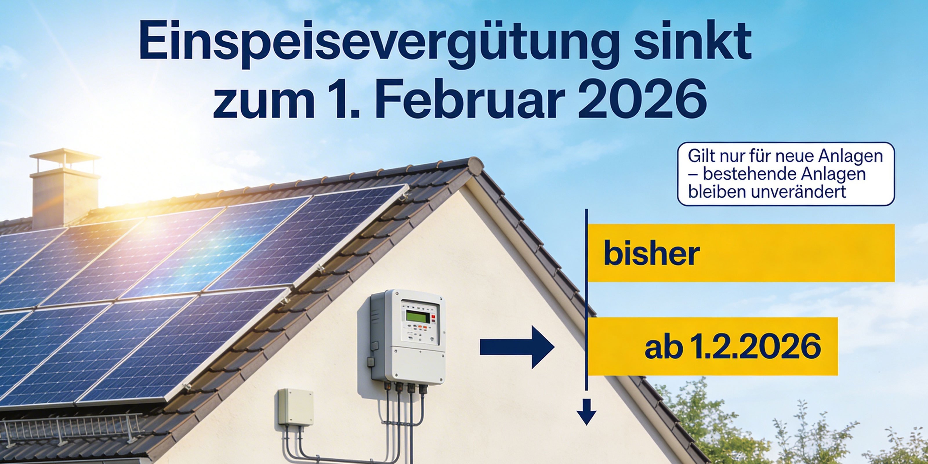 Die Einspeisevergütung für Solarstrom sinkt 2026. Wir zeigen, welche Auswirkungen das für Hausbesitzer hat und wie Sie Ihre PV-Anlage trotzdem profitabel planen.